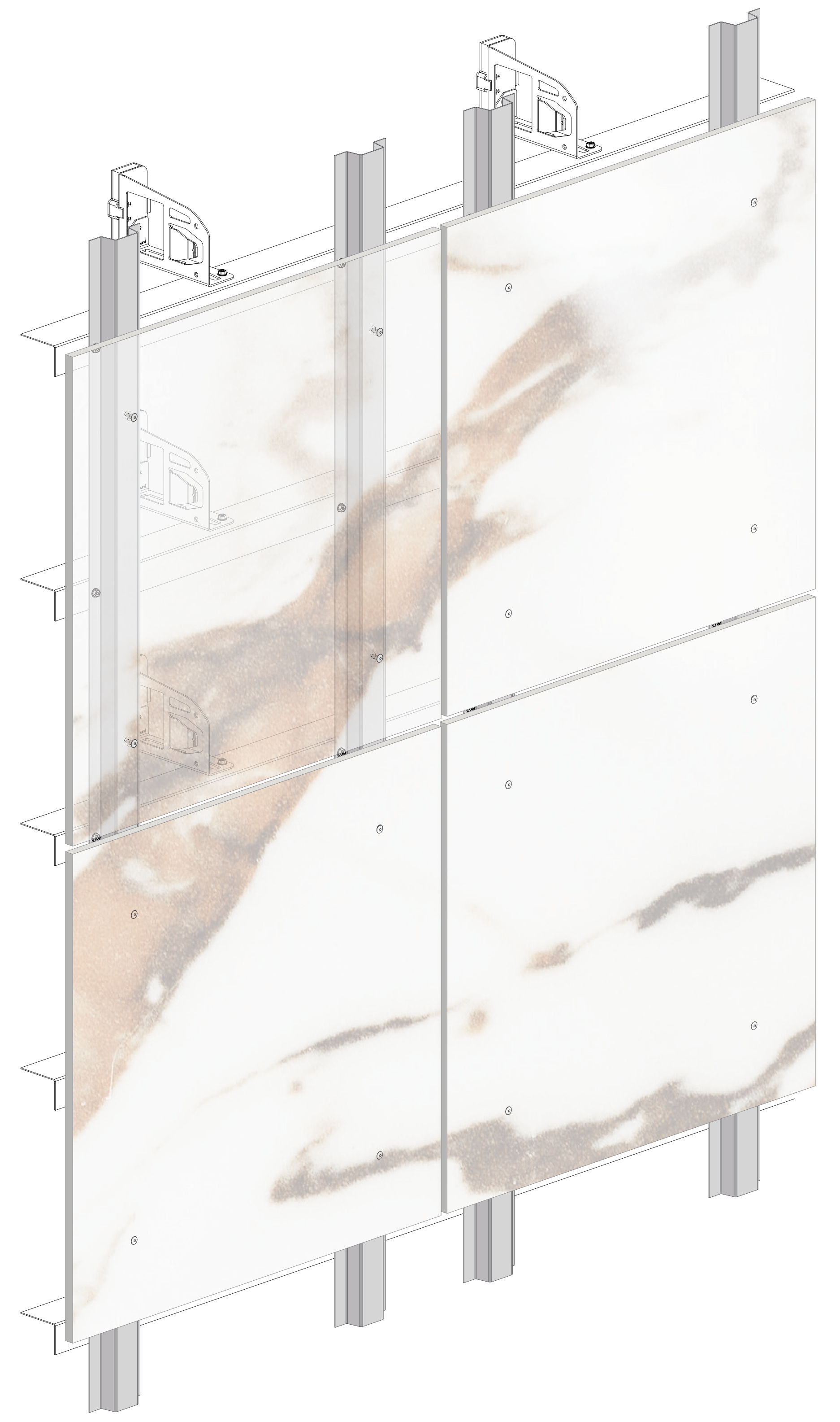 Le système N10.20 est conçu pour la fixation dissimulée de panneaux au moyen d’ancrages en contre-dépouille. Spécialement adapté aux panneaux à surface inégale, il assure un alignement uniforme grâce à ses rails permissifs, garantissant une installation solide, esthétique et à joints ouverts, pour un effet visuel léger et moderne.
